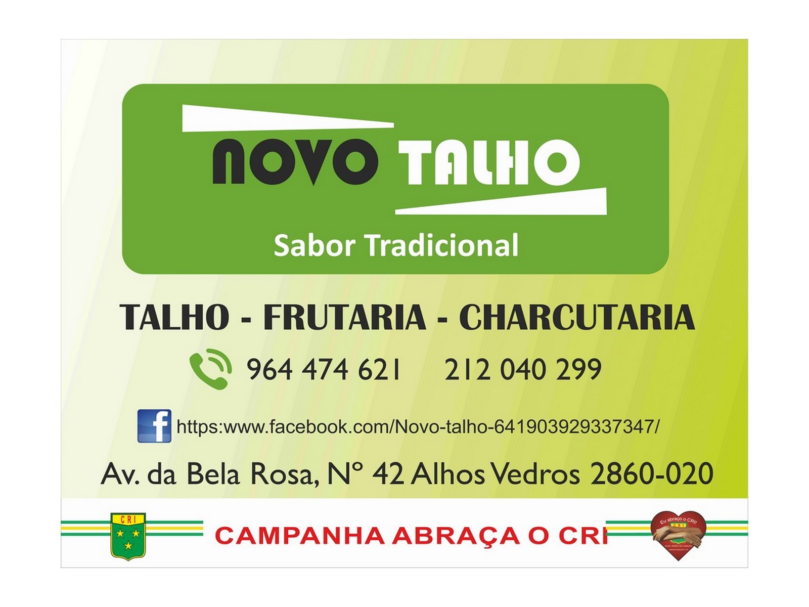 Patrocinador - Abraço ao CRI Novo Talho 7 de Agosto de 2017 Partilhar FacebookTwitterEmailLinkedInWhatsApp Relacionado Alius Vetus – Espaço Terapêutico Exclusive – Cabeleireiro e Estética LM Electricidade FS Performance Valter Car JMC – Prestação de Serviços do Sector Fabril Morchem RiesNáutica Partilhar FacebookTwitterEmailLinkedInWhatsApp Um clube especial INSCRIÇÕES ABERTAS CLICAR AQUI PARA SABER MAIS RESERVAR CAMPO CLICAR AQUI PARA SABER MAIS