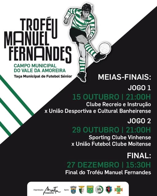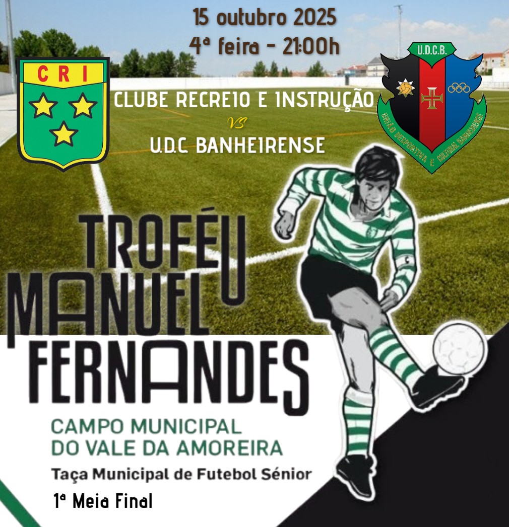 Clube Recreio e Instrução e o União Desportiva e Cultural Banheirense abrem hoje, 15 de outubro pelas 21h00, a primeira edição do Troféu Manuel Fernandes, Taça Municipal de Futebol Sénior, no Campo Municipal do Vale da Amoreira.