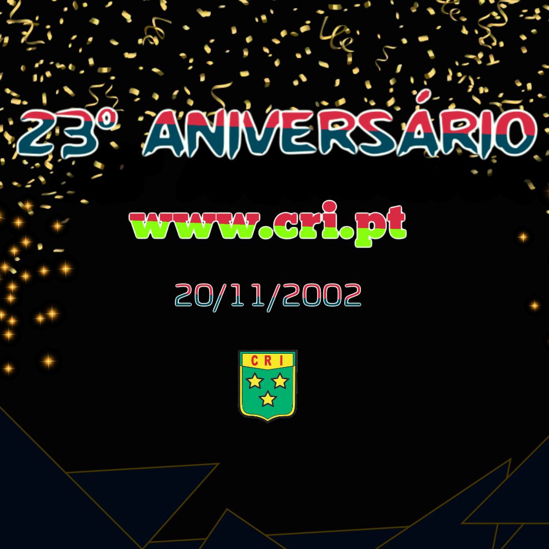 Informação www.cri.pt – 23 anos online 20 de Novembro de 2025 Desde 20 de novembro de 2002 que desenvolvo o site do Clube Recreio e Instrução. Já passaram 8400 dias e o objetivo é sempre o mesmo, a promoção do CRI, valorizar tudo aquilo que é feito diariamente neste Clube centenário. LN FacebookXEmailLinkedInWhatsApp Relacionado 110 Anos de História, Cultura e Comunidade 20 anos online Site oficial completa 16 anos Site do CRI – 13 anos Online Vídeo: Almoço do 100º Aniversário Obrigado a todos pelos parabéns Resultados: Fim de semana de 01 e 02 de novembro de 2025 Um clube especial INSCRIÇÕES ABERTAS CLICAR AQUI PARA SABER MAIS RESERVAR CAMPO CLICAR AQUI PARA SABER MAISCRI Pelo Mundo CLICAR AQUI PARA VER
