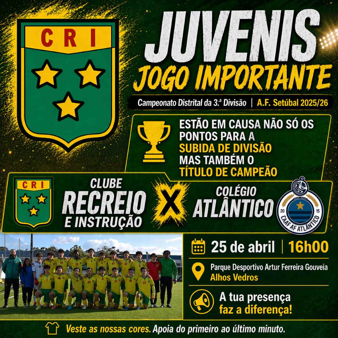 Neste desafio exigente, o apoio de todos será fundamental. Sócios, adeptos, familiares e amigos têm também um papel importante neste caminho, dando força aos nossos jovens atletas para que entrem em campo ainda mais motivados e determinados em defender as cores do Clube Recreio e Instrução.